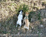 Hui, da ist ja noch ein Artikel mit mir *freu* Das Foto, wo wir beide an dem Ast schnuppern, ist wirklich super 🙂 Das hats gleich auf Mama’s Digi-Bilderrahmen geschafft *g* Mama soll das nächste mal mein Seil oder so mitnehmen, vielleicht wirds ja dann was mit Spielen 😉
